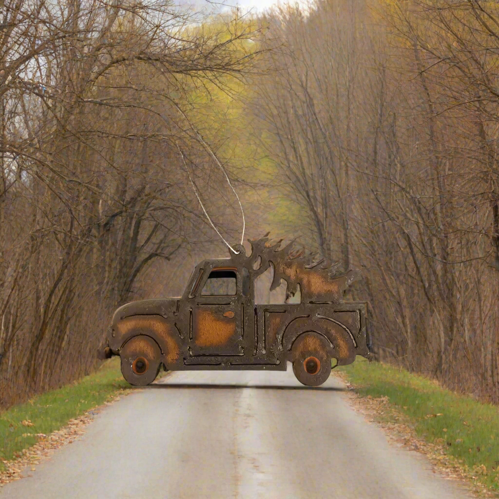 Vintage Truck with Pine Tree Rustic Metal Ornament
